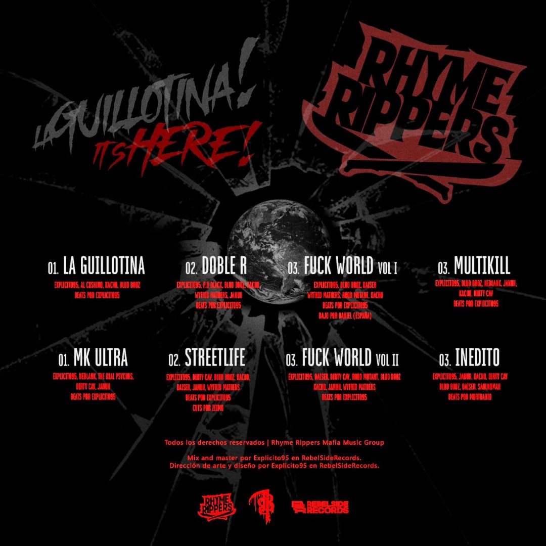 Nuevo trabajo del colectivo internacional Rhyme Rippers titulado La Guillotina. Con el respaldo de Rebelside Records y las Producciones de Explicito95 y Mortuario en el tema 8. Se trata de un disco crudo con letras duras y combativas.