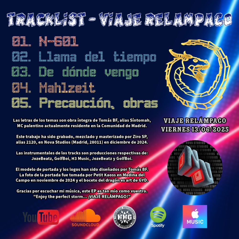 En su tercer trabajo musical y primer EP, el artista palentino nos narra su nueva y flagrante odisea. Fiel defensor de que viajar es el mejor remedio para sanar el alma, Síntomah inmortaliza en estos cinco temas una seguidilla de aventuras vividas en una etapa tan reciente como intensa de su vida. Intentando evocar una sensación diferente con cada uno de los tracks, nuestro joven protagonista quiere reflejar la naturaleza de un "viaje relámpago": inmediatez, incertidumbre e improvisación, usando como excusa la música, los vínculos o ese espíritu tan característico de querer descubrir algo nuevo. El mensaje principal que desea enviar nuestro prometedor MC con este proyecto, es que la gente se arriesgue a salir de su zona de confort, que pierda el miedo a viajar, porque cada lugar alberga nuevas experiencias, anécdotas e incluso, desdicha que puede ser transformada en inspiración. Mención especial para Ziro aka prod.2120, que desde Nova Studios (Madrid) se ha encargado de la grabación, mezcla y masterizado de todos los temas. También para los productores de los diferentes beats: Joze Beatz, golfboi y H3 Music. "Enjoy the perfect storm, son los viajes relámpago"