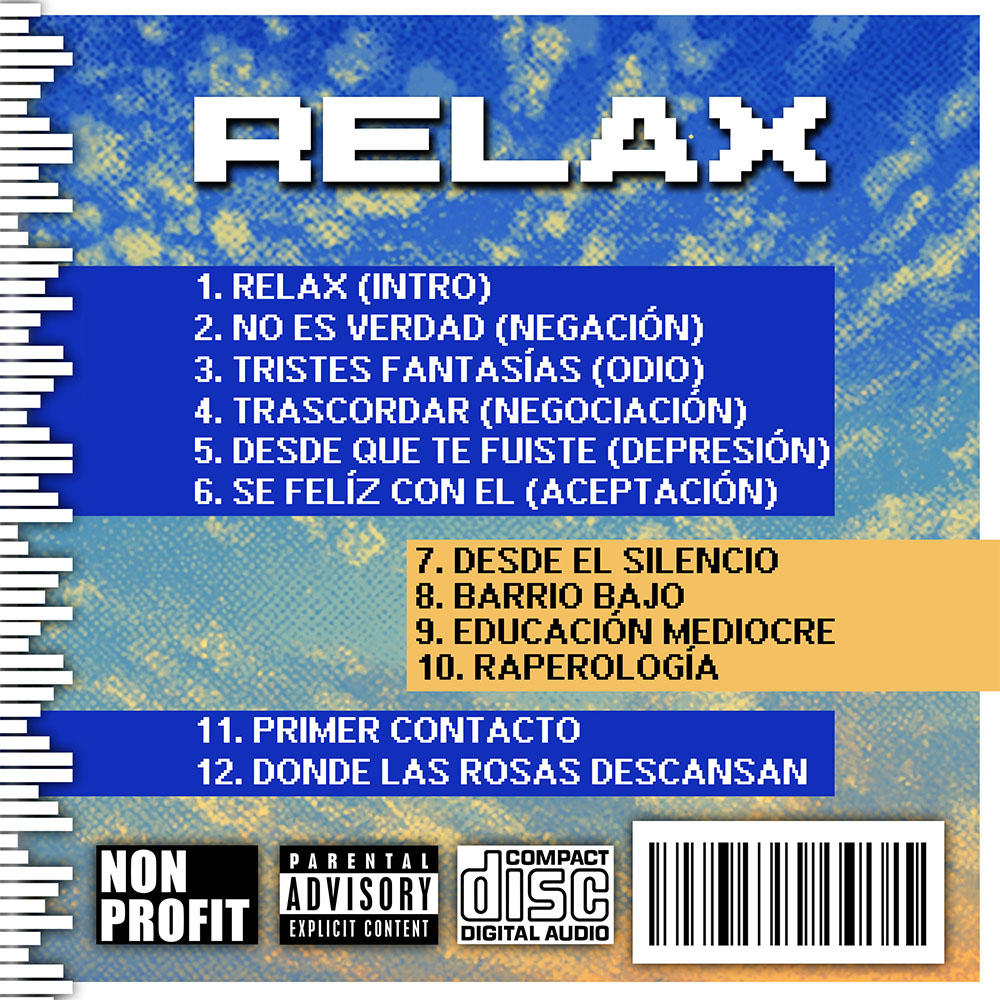 Relax es una maqueta semi conceptual donde se tratan las etapas del duelo (negación, odio, negociación, depresión y aceptación) expresadas en diferentes perspectivas de distintas rupturas amorosas, dentro de la misma también existen canciones de Rap conciencia, hasta llegar a un arco de enamoramiento y cierre. La maqueta surgió como idea en 2022, pensada como un mini álbum de 5 canciones, sin embargo, con el paso del tiempo terminaron siendo 12 pistas, dando su cierre en 2025. Éste trabajo es sin fines de lucro, con el único objetivo de expresar una visión artística por medio de la música. Se agradece infinitamente a todos los compositores que dejaron sus instrumentales como uso libre para que este proyecto fuera posible.